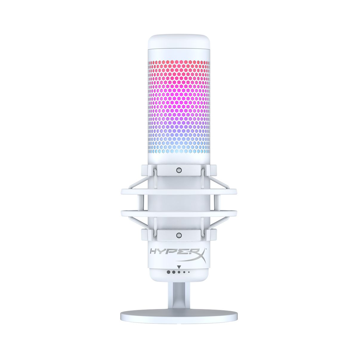 QuadCastの底にあるダイヤルを回転させて、マイク感度を簡単に調節できます。