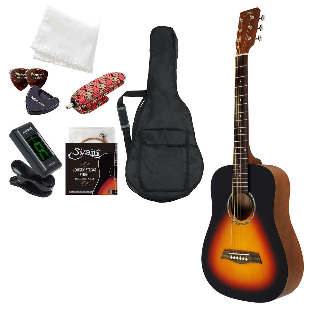 S.Yairi ミニアコギター(ヴィンテージサンバースト)弦+クリップチューナー+カポタスト+ピック+ピックケース+クロスセット YM-02/ VS (スペシヤルSET) 返品種別A