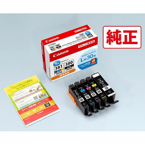 キヤノン [純正]インクカートリッジ BCI-381+380/ 5MP(5色マルチパック)+写真用紙(L判)30枚付き Canon インクタンク BCI-381+380/ 5MP 返品種別A
