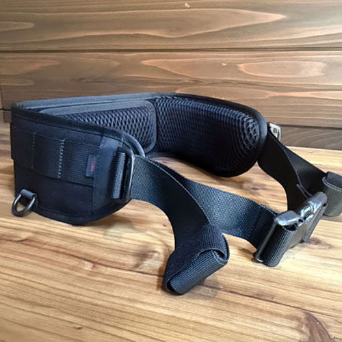 ◆腰部の疲労を軽減する極厚メッシュパッドと、ベルトを引っ張るだけで身体にフィットするウェービングアジャスターを装備しています。