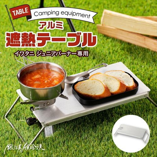 【イワタニ ジュニアコンパクトバーナー CB-JCB】専用のアルミ遮熱板テーブルです。バーナーを使用する際に発生する反射熱を防ぐだけでなく、メスティンやマグカップなどを置くなど様々な使い方ができます。