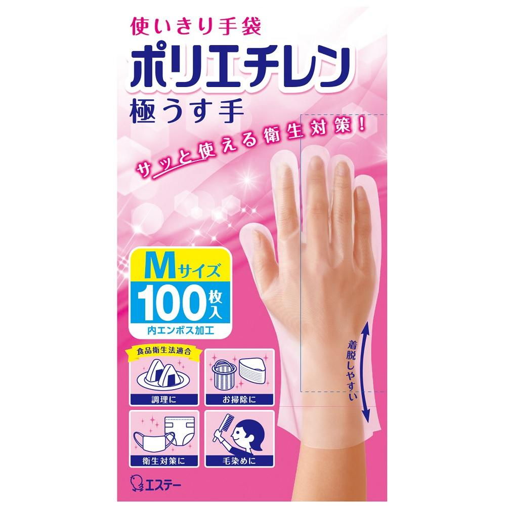 使いきり手袋ポリエチレン極うす手 M 半透明 100枚 エステー 返品種別A