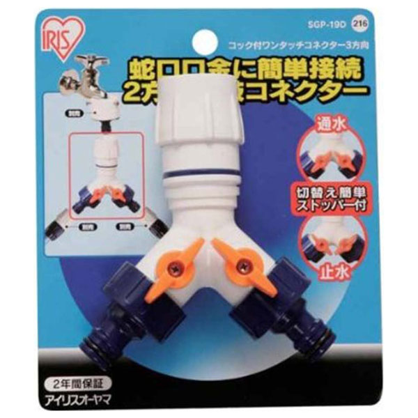 アイリスオーヤマ コック付きワンタッチコネクター2方向 φ12-φ15 (台紙付) SGP-19D 返品種別B
