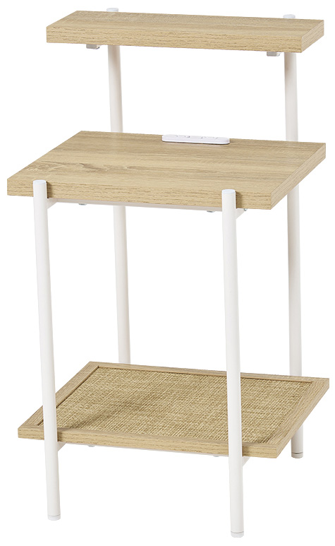 在庫状況:お取り寄せ/お届け:1〜2週間/■外箱について配送中に外箱に汚れや傷が生じる場合がございます。誠に申し訳ございませんが、外箱のみの汚れや傷による商品の交換や返品は受け付けておりません。(商品に破損・欠品があった場合は、その限りではございません。)◆ラタン調の編み目で仕上げた棚板がアクセントとなり、おしゃれなナイトテーブル。◆2口コンセント付きでスマートフォンの充電やライトなどを置いて使用できます。・サイズ(約):幅39×奥行39×高さ70cm・組立:お客様組立/[KST3174NW]