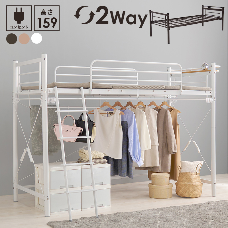 在庫状況:お取り寄せ/お届け:約1週間/◆(沖縄、離島、一部山間地)への配送は承っておりません。※沖縄県・離島・一部山間地が配送エリア外となります。※ご注文後にお届け先がお届けできない地域の場合はご連絡の上、ご注文をお取消しとさせて頂きます。◆こちらの商品はメーカー及び取引先より直接商品を発送させて頂きます。キャンセルは承りできません。※他の商品と一緒にお送りすることができませんので、こちらの商品のみお買い求めください。※別の商品を同時にご注文された場合はご連絡の上、ご注文をお取消しとさせて頂きます。※配送先として、営業所留めの指定はできません。※配達時間のご指定は承ることができません。※納品書は同梱されておりませんのでご了承願います。■外箱について配送中に外箱に汚れや傷が生じる場合がございます。誠に申し訳ございませんが、外箱のみの汚れや傷による商品の交換や返品は受け付けておりません。(商品に破損・欠品があった場合は、その限りではございません。)◆ベッド下の空間に市販のカーテンを取り付け可能なパイプロフトベッド。◆ハンガーポールもついているので衣類収納としても活躍。◆季節家電や本、小物な