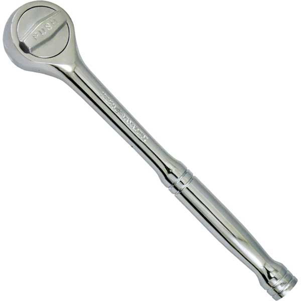 ◆鏡面磨きで仕上げたベーシックな丸形ラチェットハンドル。