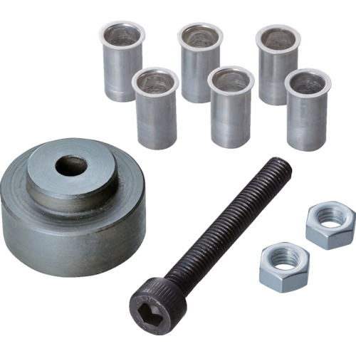 - セット内容:ナッター本体×1個、マンドレル×1個、六角ナット×2個、アルミ製エビナット×6個