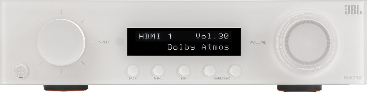 音楽と映画をリアルに再現。JBL MA710は、最新の8K HDMI仕様とDolby AtmosやDTS:Xによるイマーシブオーディオのネイティブ7チャンネルデコードに対応し、究極のホームシアター体験を実現するAVアンプです。