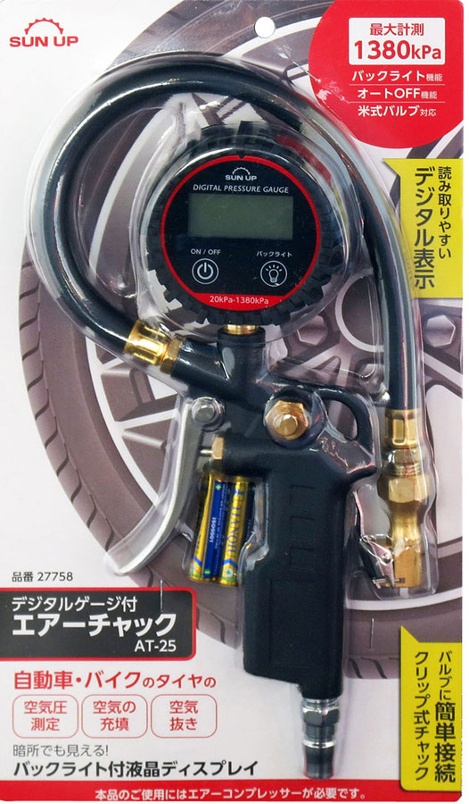 在庫状況:お取り寄せ/お届け:約1週間/※画像はイメージです。※自転車(シティサイクル・ロードバイク)に使用されている英式バルブや仏式バルブには使用できません。※本品でタイヤに空気を入れるには別途エアーコンプレッサーが必要です。(本品だけで空気入れは行えません。)※付属の電池はお試し用です、寿命が短い場合があります。◆ひと目で読み取りやすいデジタル表示。◆自動車・バイクのタイヤの(空気圧測定)(空気の充填)(空気抜き)に。◆一般的な乗用車・バイクなどに使用されている米式バルブに使用できます。※自転車(シティサイクル・ロードバイク)に使用されている英式バルブや仏式バルブには使用できません。/[27758サンアツプ]