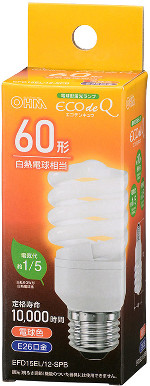 オーム 電球形蛍光ランプ D15形・電球色 OHM EFD15EL/ 12-SPB 返品種別A