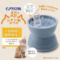 在庫状況:お取り寄せ/7日〜10日で出荷/※仕様やパッケージは、リニューアルなどの理由で変更になっている場合がございます。予めご了承下さい。下部尿路の健康維持に!いつものお水をカラダにやさしい軟水に◆取り付けるだけで簡単ネコちゃん型のカートリッジをボウルにつけるだけで、水道水のマグネシウム・カルシウムを減少させ、やさしい軟水に!◆自然な姿勢で飲みやすい自然な姿勢で飲みやすい、高さのある脚付きタイプ。すべり止めシリコン付。◆ニャン水ウエーブペロペロすると内側のリブによって波が起こり、効率よく軟水に!内側のリブにより、ネコちゃんがペロペロと舌で水を飲むと自然に波紋が広がります。これが(ニャン水ウェーブ)となり、飲みやすさをサポートします。◆お手入れ簡単カートリッジを取り外して、ボウルは食洗機での清掃が可能です。電子レンジもOK。◆カートリッジ交換頻度カートリッジの効果は約30日続きます。30日ごとに新しいものに交換してください。■容量:300ml■本体サイズ:W120×D120×H100mm■材質:[本体]磁器、シリコン [カートリッジ]PP、軟水セラミックス、抗菌セラミックス/[PCチヨウニヤンスイボウルブル]