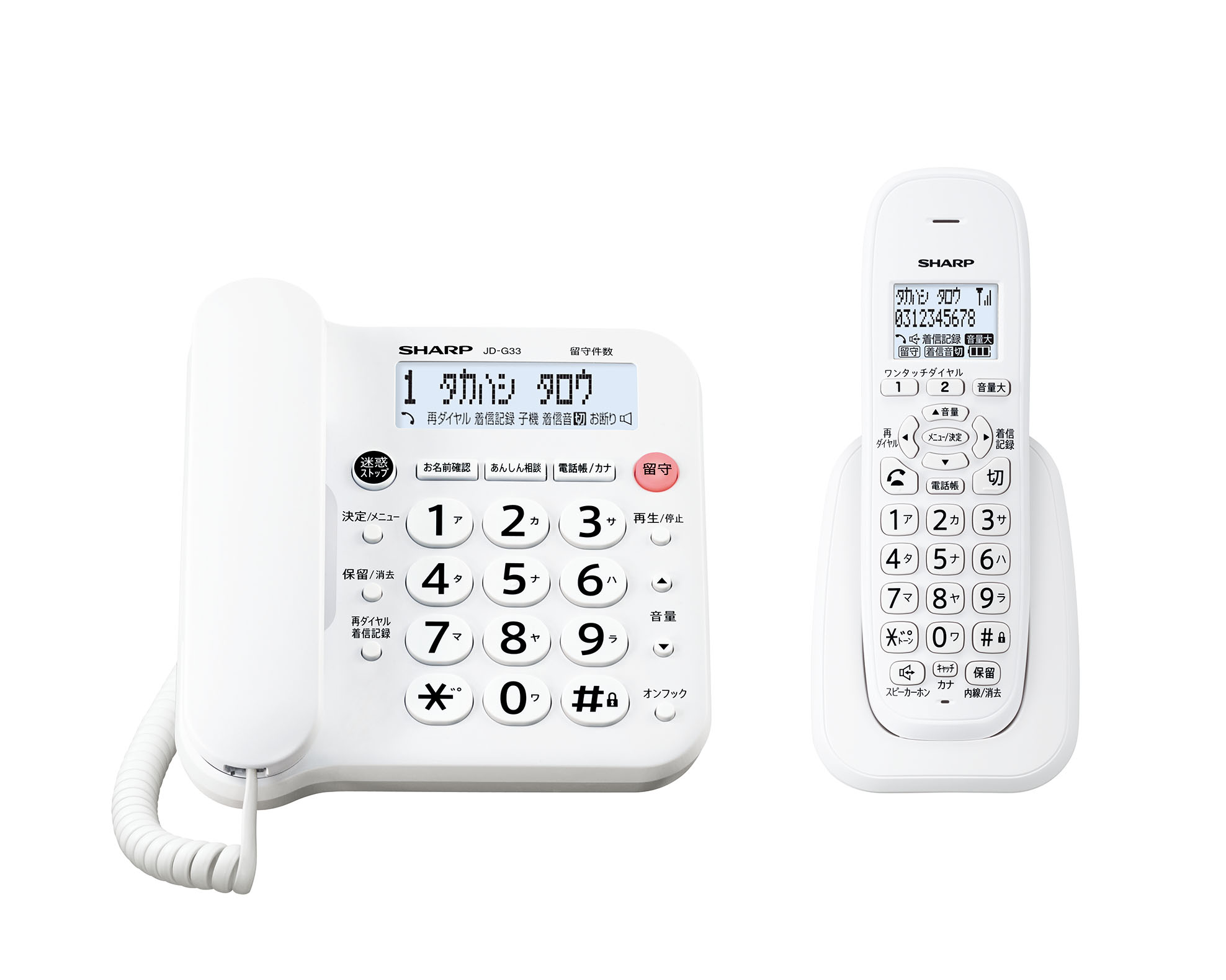 在庫状況:お取り寄せ/2021年11月 発売/※ご注文に関しましては、お1人様1台までのご注文でお願いします。それ以上の複数購入はご遠慮ください。※転売目的や、同一住所で名前を変えてのご注文など、同一と思われるお客様より複数のご注文をいただいた場合、ご注文をお取り消しさせていただくこともございますのでご了承ください。◆シンプルで見やすいキーレイアウトを採用したすっきりデザイン◆文字がくっきり見える(ホワイト液晶)を採用◆ワンタッチで詐欺・迷惑電話を撃退できる(迷惑ストップ)ボタンを搭載/[JDG33CL]