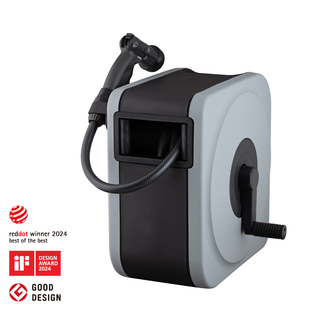 紫外線によるホースの経年劣化を低減するフルカバーホースリールです。