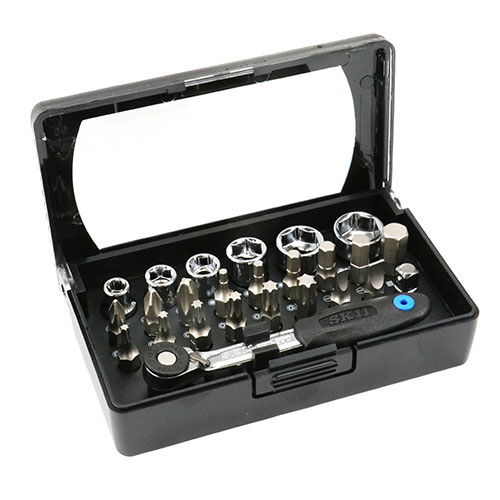 - 6.35sq.ソケット(5.5・7・8・10・12・13mm)、16mmビット(+2)
