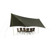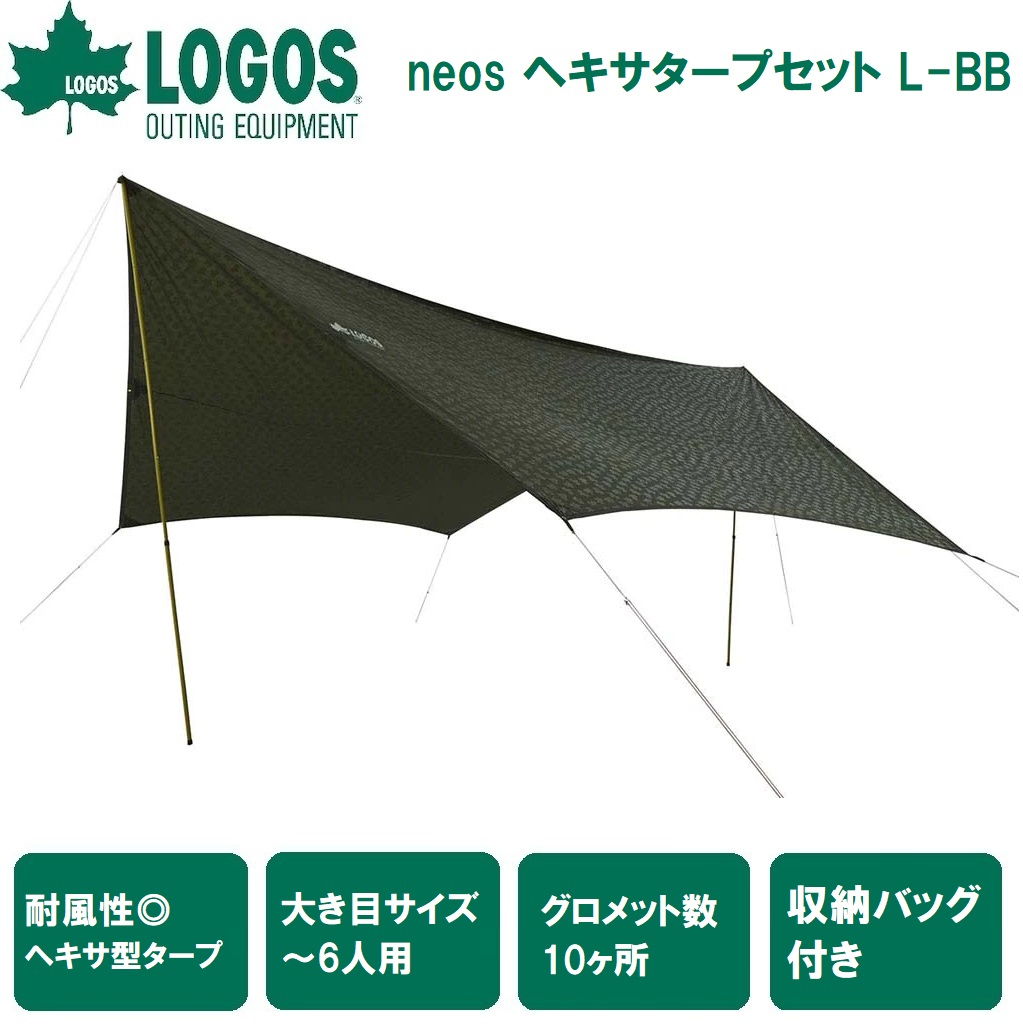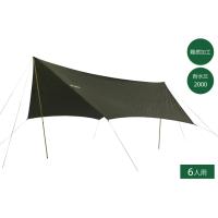 フレキシブルな張り方も楽しむことができる6人用のヘキサ型タープ。