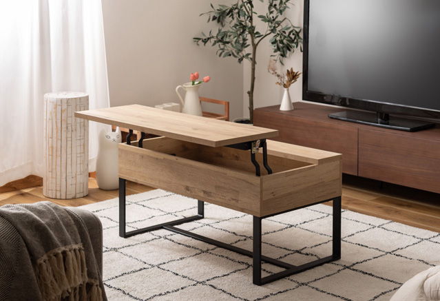 2022年06月 発売◆収納付きで天板の高さを変えられるテーブル。