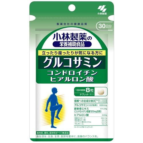 在庫状況:お取り寄せ/7日〜10日で出荷/※仕様及び外観は改良のため予告なく変更される場合がありますので、最新情報はメーカーページ等にてご確認ください。◆スムーズに行動したい方に人気の3成分グルコサミン、コンドロイチン硫酸、ヒアルロン酸をまとめてひとつにしました。◆1日8粒でグルコサミン塩酸1500mgと高配合。◆さらにコンドロイチン硫酸やヒアルロン酸まで摂取できます。召し上がり方1日の摂取目安量:8粒栄養補助食品として1日8粒を目安に、かまずに水またはお湯とともにお召し上がりください。※短期間に大量に摂ることは避けてください。食生活は、主食、主菜、副菜を基本に、食事のバランスを。【成分】(製造時、1日目安量あたりの含有量)・グルコサミン(えび・かに由来) 1500.0mg ・サメ軟骨抽出物(コンドロイチン硫酸67%含有) 180.0mg ・ヒアルロン酸 5.0mg ・結晶セルロース 280.8mg ・デキストリン 120.0mg ・微粒酸化ケイ素 34.6mg ・ステアリン酸カルシウム 21.6mg ・粉末還元麦芽糖 18.0mg コーティング材:シェラック■栄養成分表示・エネルギー 6.8kcal ・たんぱく質 0.63g ・脂質 0.0044〜0.044g ・糖質 1.0g ・食物繊維 0.36g ・ナトリウム