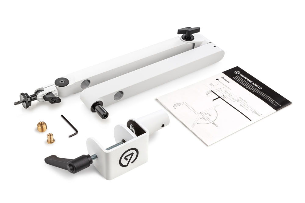 - 同梱物:Wave Mic Arm LP、変換アダプタ 2個 (1/4から3/8、1/4から5/8 各1個)、アレンレンチ