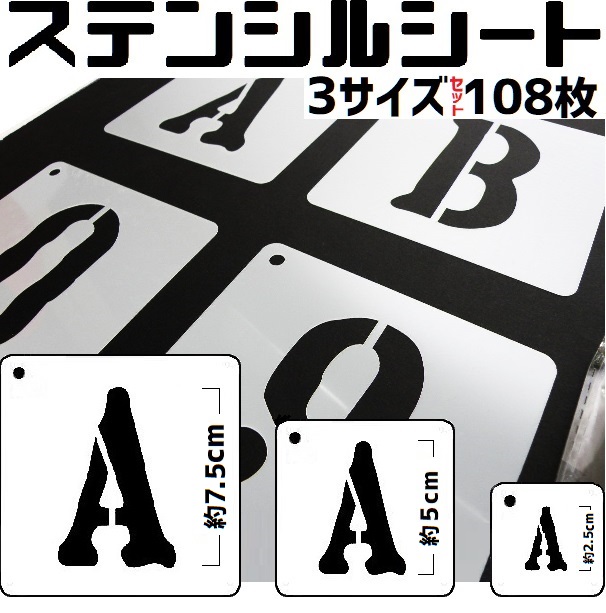 ステンシル シート 大中小 36枚 × 3サイズ 108枚 セット アーミー 英数字 アルファベット DIY プレゼント 文字サイズ 縦 2.5cm 5cm 7.5cm
