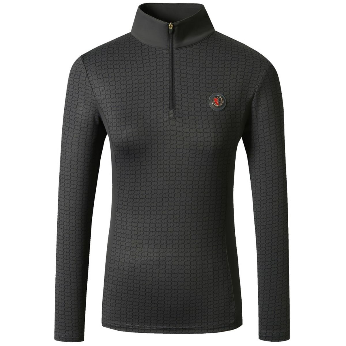 Covalliero20周年記念のアクティブシャツ。高伸縮素材で体にフィットし、通気性・軽量性も抜群。ジッパー付きスタンドカラーで着脱も簡単、洗練されたデザイン。