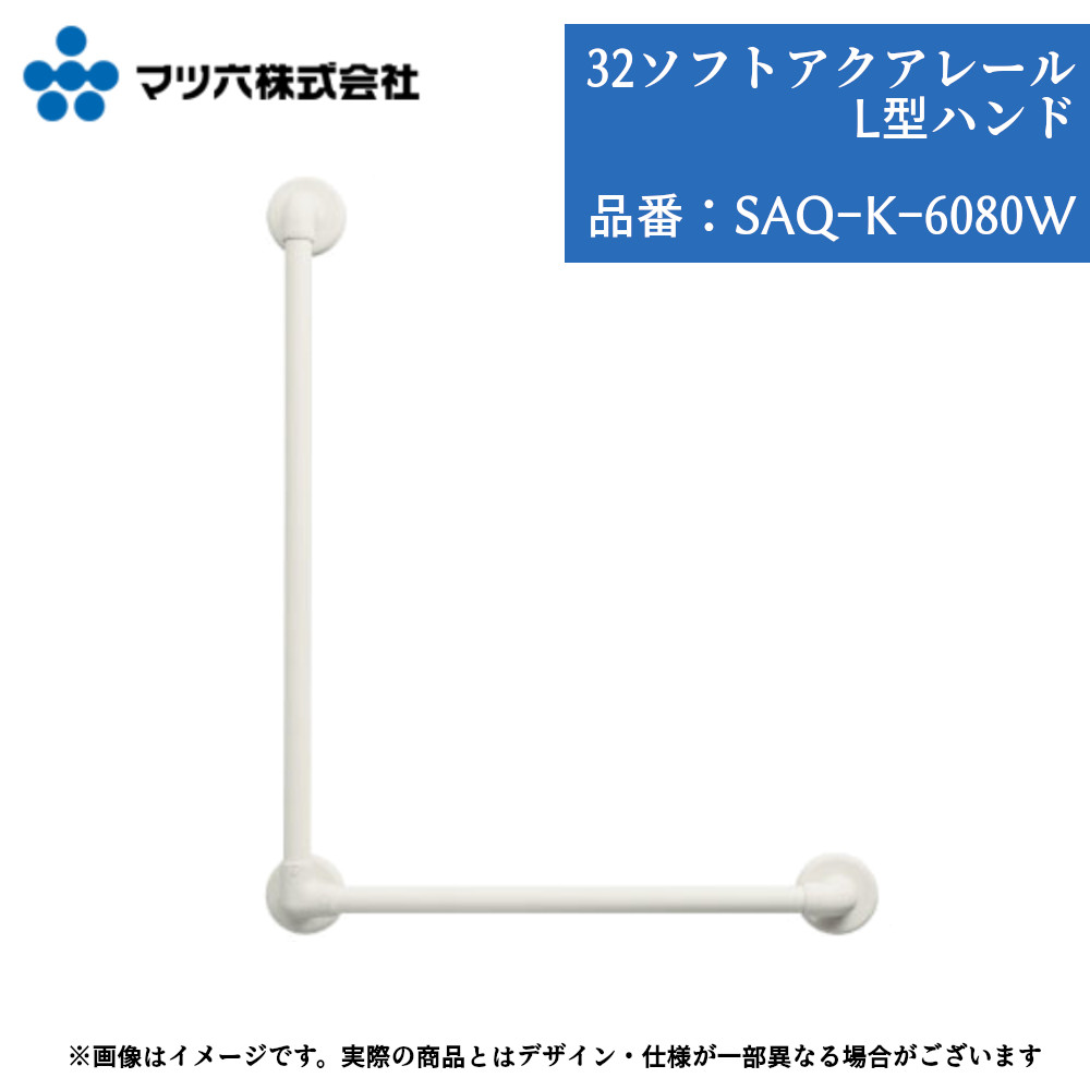 浴室 手すり マツ六 32ソフトアクアレール L型ハンド 32mm×600mm×800mm SAQ-K-6080W 手摺 tesuri 風呂 diy 交換 介護 リフォーム 後付 高齢者 白 左右