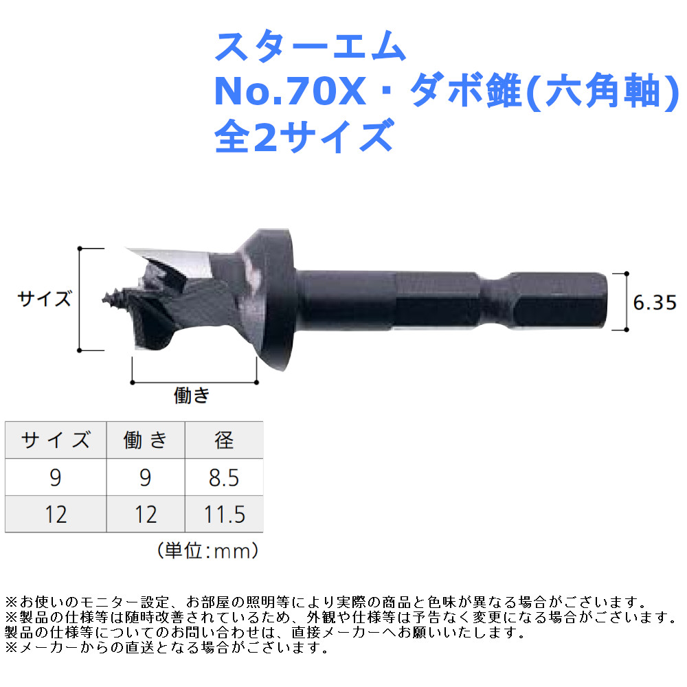 穴あけ 電動 電気 ツール 道具 工具 スターエム No.70X ダボ錐(六角軸) 全2サイズ