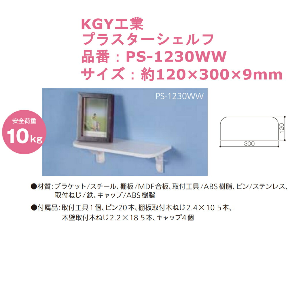 棚 インテリア 壁面 収納 玄関 ディスプレイ 小物 置き おしゃれ KGY工業 プラスターシェルフ 品番:PS-1230WW サイズ:約120×300×9mm
