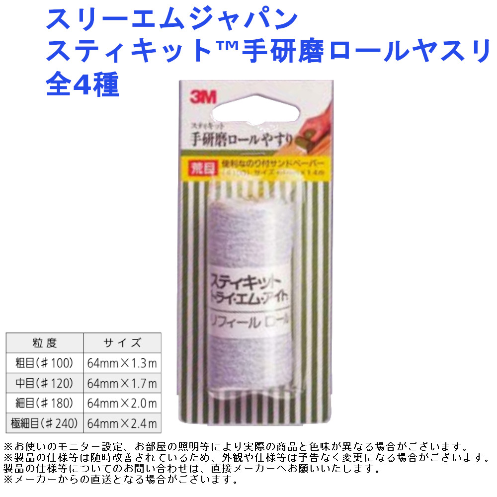 鑢 ヤスリ 錆 傷 仕上げ 木工 建具 道具 工具 スリーエムジャパン スティキット手研磨ロールヤスリ 全4種