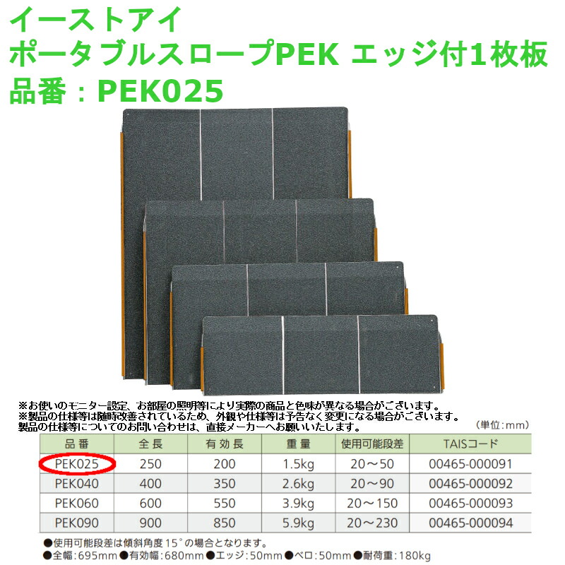 車椅子 段差解消 屋外用 介護 軽量 バリアフリー イーストアイ ポータブルスロープPEK エッジ付1枚板 品番:PEK025