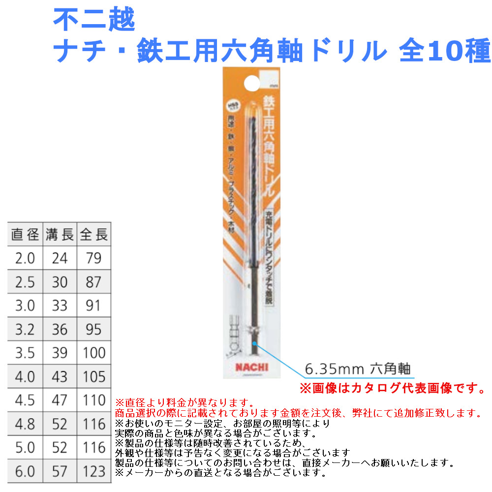 インパクトドライバー 軟鉄 鋳鉄 アルミ 銅 プラスチック 木材 穴あけ 下穴 電動 電気 ツール 工具 金属 不二越 ナチ 鉄工用六角軸ドリル 全10種