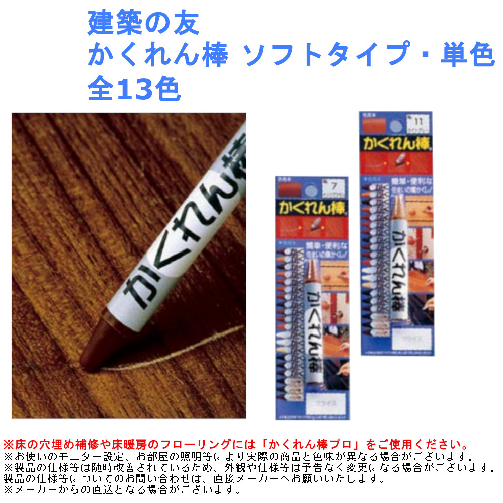 補修 修繕 引っ越し 現状回復 傷 穴 隠す DIY リフォーム 建築の友 かくれん棒 ソフトタイプ・単色 全13色