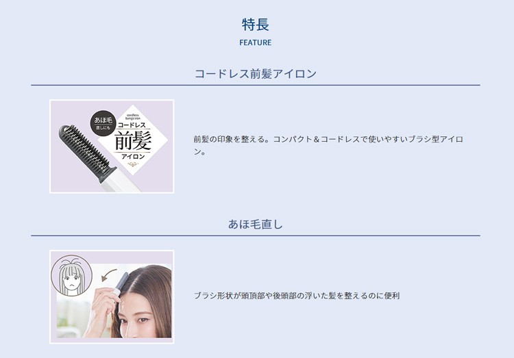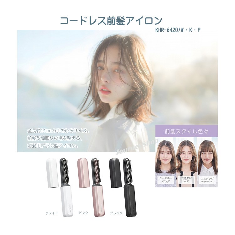 コードレス 前髪アイロン KHR-6420/W・K・P 充電式コードレス 前髪用ブラシ型アイロン 持ち運び 携帯用 セラミックコーティング 手のひらサイズ あほ毛直し ツヤ