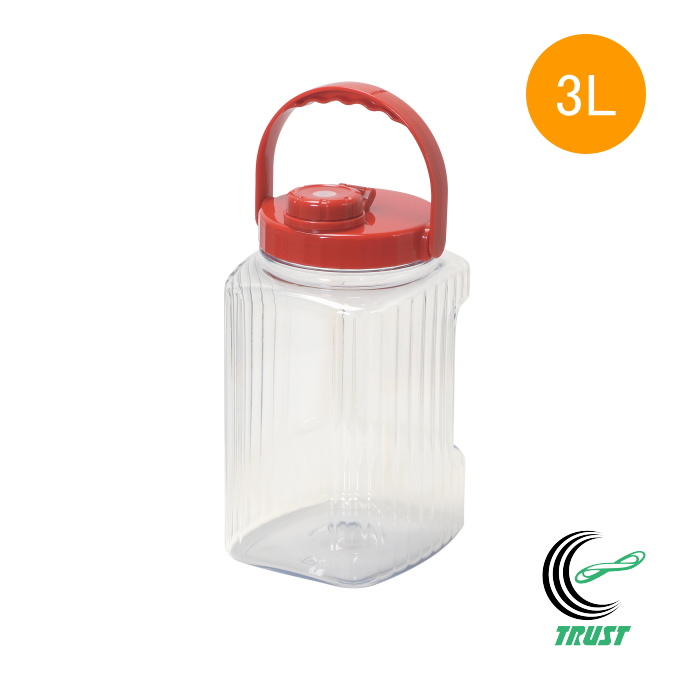 PC軽くて割れにくいスリム果実酒びん 3L 1個 HB-6935 日本製 果実酒 梅酒 酒作り 容器 漬物 PET樹脂 プラスチック 取っ手付 スリム ポット