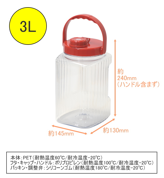 蓋・キャップ・ハンドル:ポリプロピレン(耐熱温度100℃ / 耐冷温度-20℃)