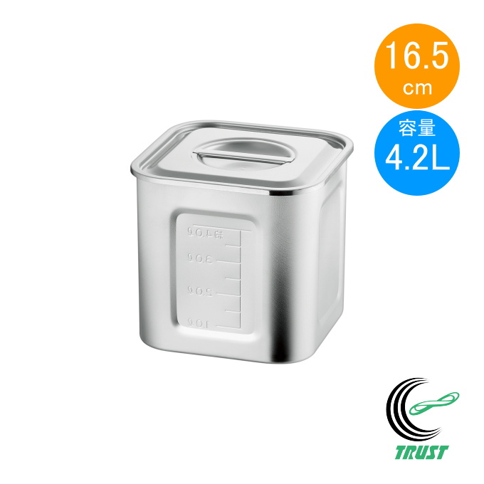 21-0 目盛付 角キッチンポット 16.5cm 取っ手無し 15165 日本製 ステンレス製 赤川器物製作所