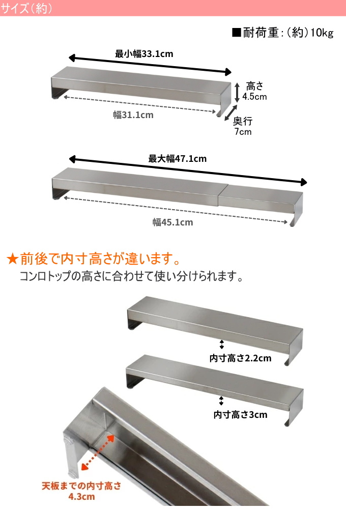 本体サイズ:(約)幅33.1〜47.1×奥行7×高さ4.5cm