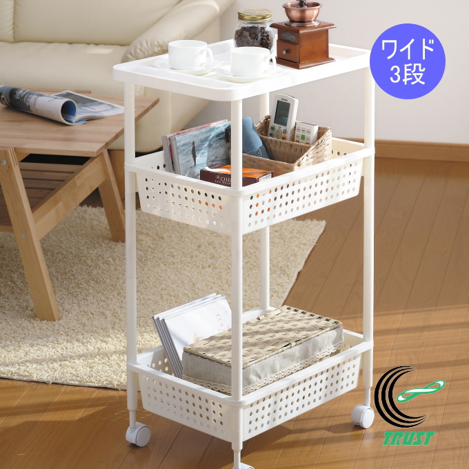 スペーシア ワイドワゴン 3段 H-7193 日本製 すき間収納 キッチン収納 収納 ラック すき間 隙間 スリム 棚 コロ付き パール金属 ホワイト