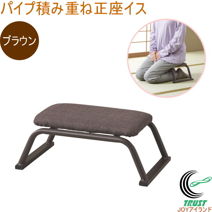 パイプ積み重ね正座イス ブラウン N-8410 椅子 イス チェアー パイプ椅子 ダイニングチェア メッシュ 敬老座いす 正座 正座イス