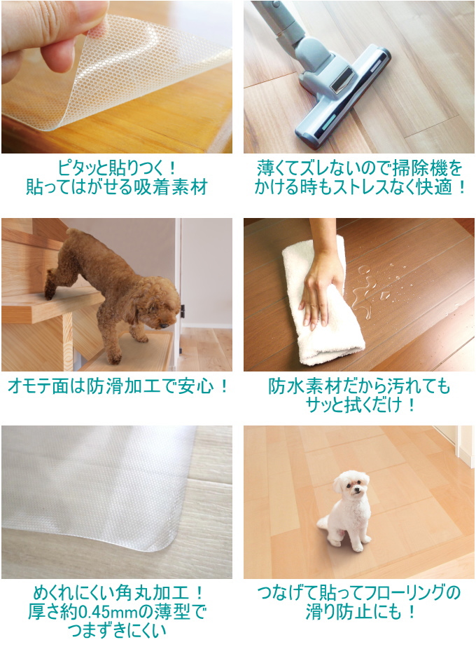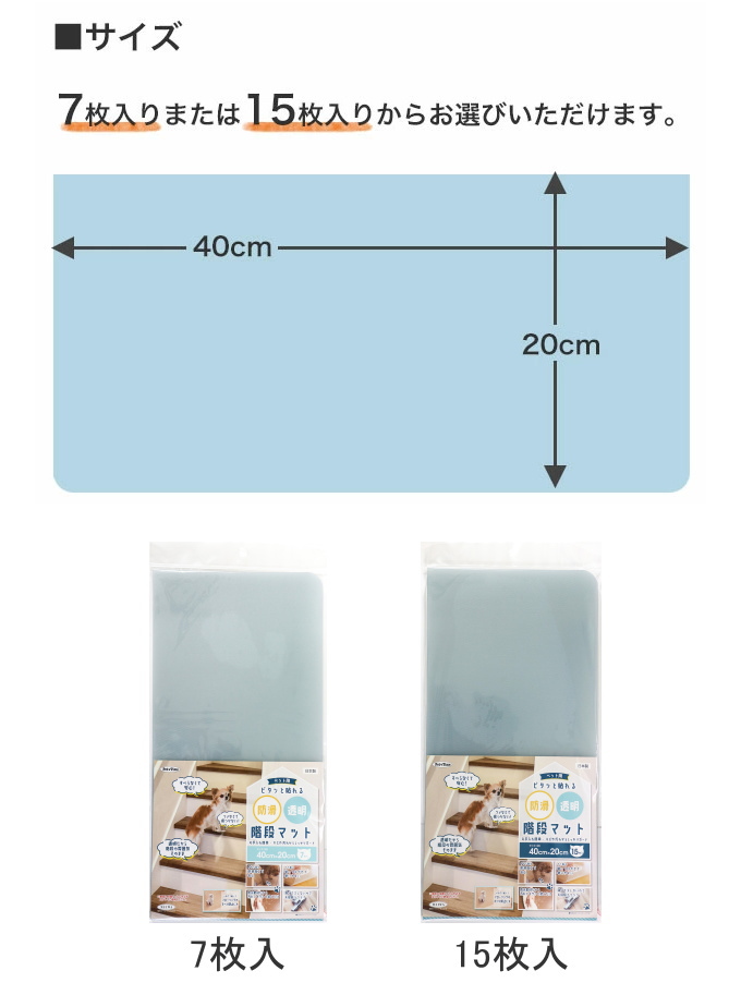 ペット用 ピタッと貼れる 階段マット 15枚入り PSMT-4215 透明 防滑 日本製 送料無料 滑り止め キズ防止 汚れ防止 犬 猫 防水 薄型 貼って剥がせる 明和グラビア