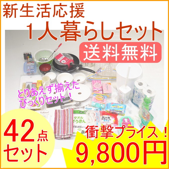 新生活応援 一人暮らし42点セット 送料無料 新成人 引っ越し 1人暮らし 鍋 フライパン 皿 単身赴任 トイレ 引っ越し