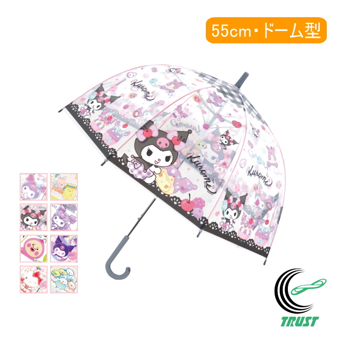 子供ビニール傘 55cm ドームタイプ かさ 傘 雨具 雨傘 クリア ワンタッチタイプ 8本骨 キャラクター クロミ すみっコぐらし サンリオ こびとづかん