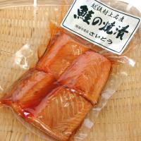 | 鮭の焼漬 4切入 | [原材料・成分] 銀鮭(チリ産)、醤油、砂糖、みりん、酒、食塩 [内容量・重量] 180g(4切入) [生産地] 新潟県村上市 [賞味期限] 60日 |