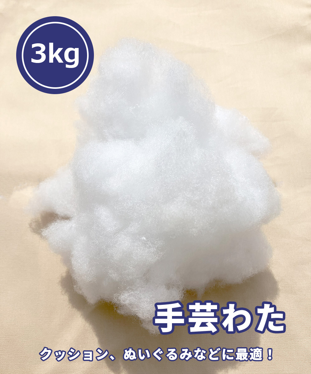 約 3kg【 手芸わた 】 手芸綿 わた 綿 詰めわた クッション用 ぬいぐるみ用 詰め綿 つめわた わた 3kg 大容量 詰め替え