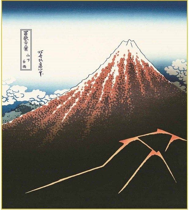 特色工芸色紙1枚 浮世絵 富嶽三十六景 山下白雨 作:葛飾北斎 K3-012