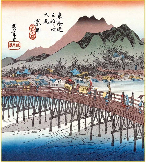 特色工芸色紙1枚 浮世絵 東海道五十三次 京師三条大橋 作:歌川広重 K3-028