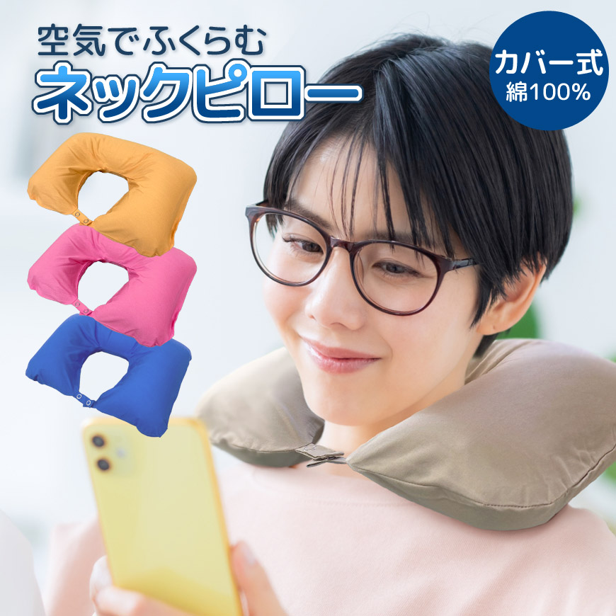 P10倍 空気でふくらむ ネックピロー カバー付き 洗える エアークッション 旅行用品 首枕 コンパクト 畳める カバー式 大人用 子供用 アウトドア