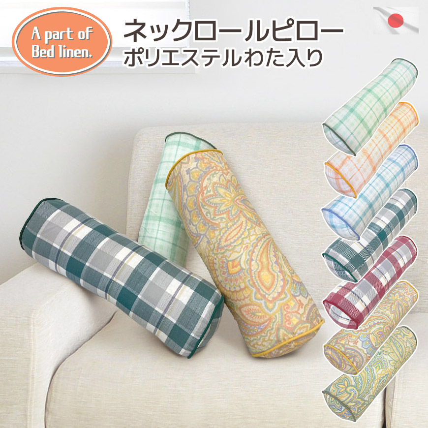 A part of Bed Linen. 発送当日わた入れ ネックロールピロー 円柱 直径15R×40cm 日本製 コットンプリント 枕 クッション おしゃれ 可愛い 総柄 寝具 国産