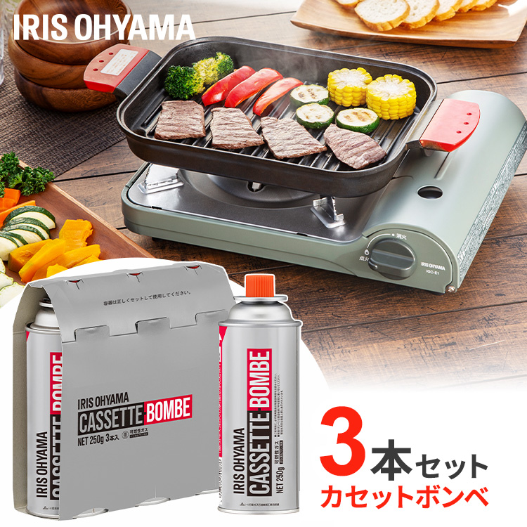カセットボンベ 3本 カセットボンベ ガスボンベ 交換 買い置き 保管 カセットコンロ 卓上コンロ 防災 備蓄 アウトドア キャンプ アイリスオーヤマ IGB-250B *