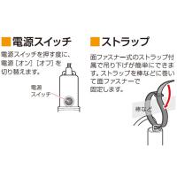 ライトをしっかり支える面ファスナー式ストラップがついているので、どこにでも吊り下げて使えます。