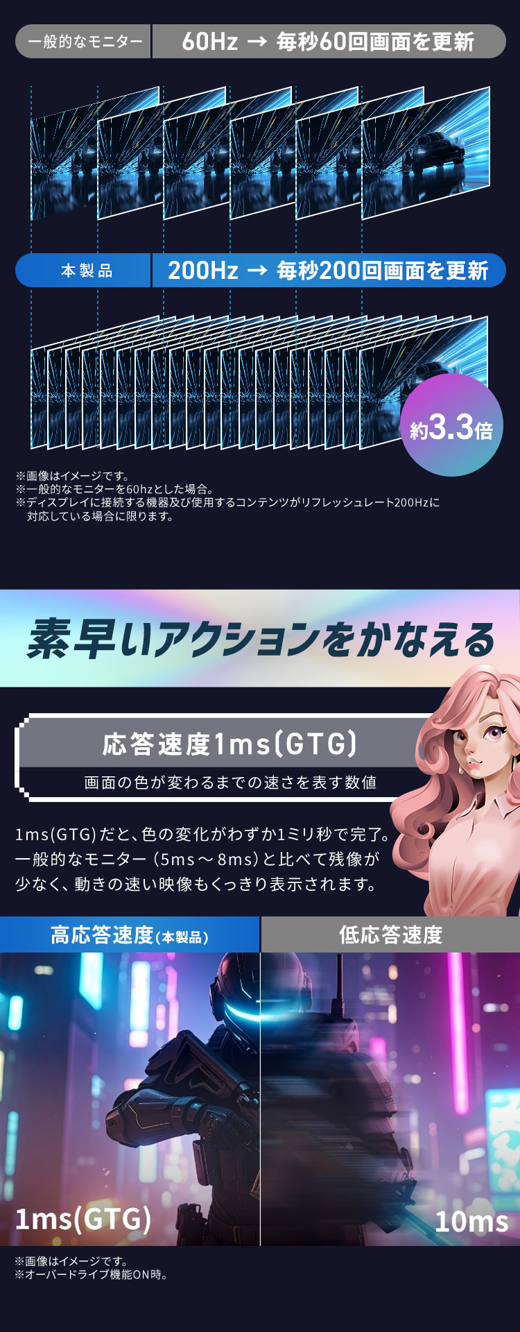 (※ディスプレイに接続する機器が、リフレッシュレート200Hz出力に対応している場合に限ります。)